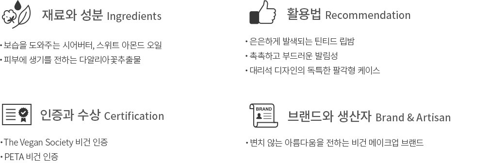 ・ 특징 : 입술에 자연스러운 생기를 더하는 틴트 립밤이에요.