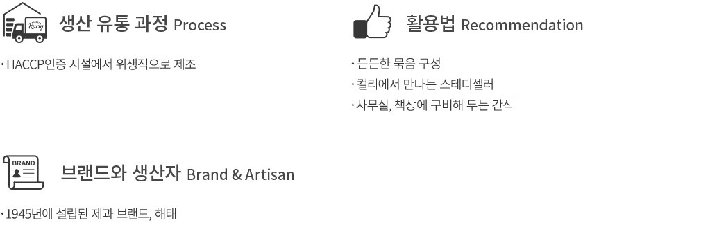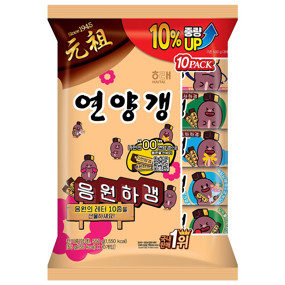 세대를 뛰어넘어 오랜 기간 사랑을 받아온 장수 간식에서는 저마다 재미있는 이야기를 찾을 수 있죠. 지금 소개하는 연양갱은 1945년, 해태의 설립연도에 출시되어 현재까지도 많은 사랑을 받고 있는 제품이랍니다. 컬리는 스테디셀러 스낵을 마트나 편의점에 일부러 나가지 않아도 집에서 편하게 즐길 수 있도록 준비했어요. 넉넉한 10개 묶음 구성으로, 사무실이나 학교 등에 구비해 두고 함께 나누어 먹기에도 꼭 알맞답니다.