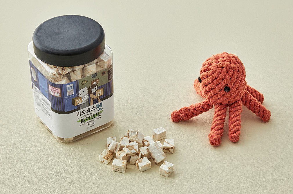 다양한 음식을 찾아 먹더라도 결국에는 가공을 최소한으로 거친 신선한 식재료 하나의 풍미만 못하다는 것을 깨닫곤 하지요. 반려동물도 마찬가지예요. 보관이나 손질의 번거로움 없이 언제라도 재료가 품은 고유의 맛과 영양을 생생하게 살려낼 수 있는 간식, 바로 동결건조 트릿입니다. 마도로스펫이 준비한 동결건조 트릿은 다른 어떠한 첨가물도 더하지 않고 북어, 단 하나의 식재료만 사용한 100% 원물 간식이랍니다. 그대로 주어 바삭바삭 씹어먹게 해도 좋고, 가루내어 토핑으로 사용해도 좋고, 원육의 결과 향이 살아나도록 물에 촉촉하게 불려 주어도 좋아요.