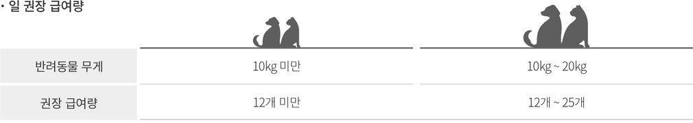 간식 급여 시 주의사항 ・ 반려동물의 연령, 종의 특성, 활동량에 따라 급여량을 조절해주세요.