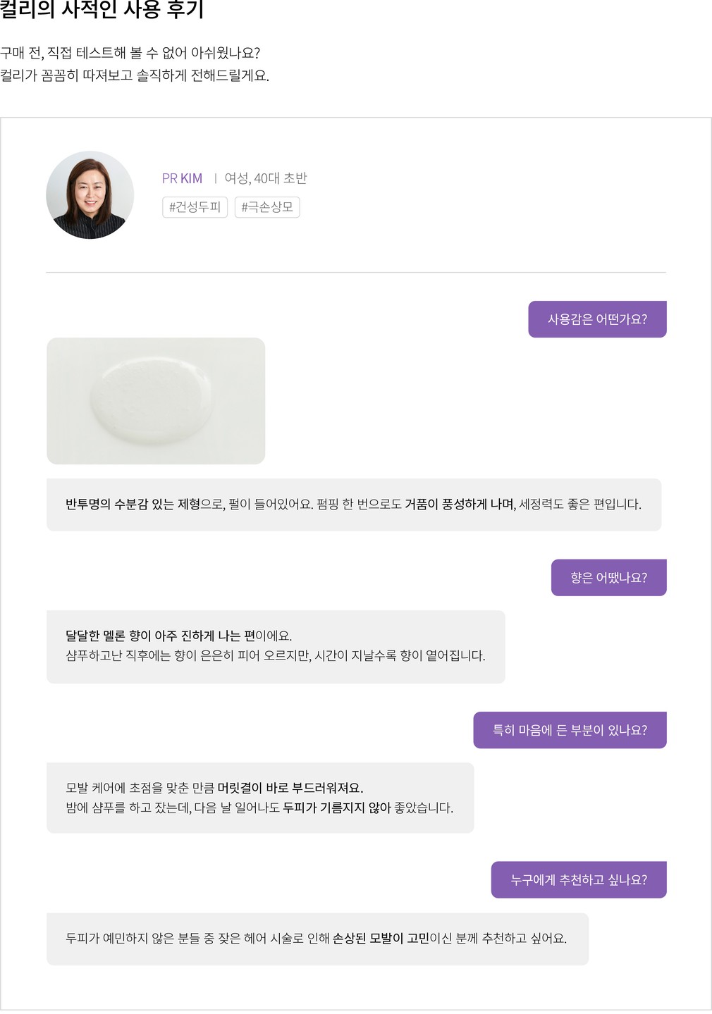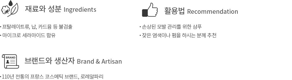 추천 루틴 ・엘세브 토탈 리페어 5 샴푸 사용 뒤 인스턴트 미라클 헤어팩으로 영양을 공급해주세요. 그 다음 컨디셔너로 마무리하여 수분을 유지해주면 머릿결이 더욱 부드러워질 거예요.