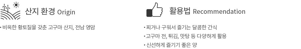 신선식품의 특성상 상품의 중량의 3% 내외의 차이가 발생할 수 있습니다. 햇고구마의 경우 저장고구마와 달리 큐어링(숙성)과정을 길게 거치지 않은 상태이기 때문에 저장고구마 대비 당도가 낮은 편입니다. 에어프라이어 조리 보다는 찌거나 삶는 방식의 조리를 추천 드립니다.