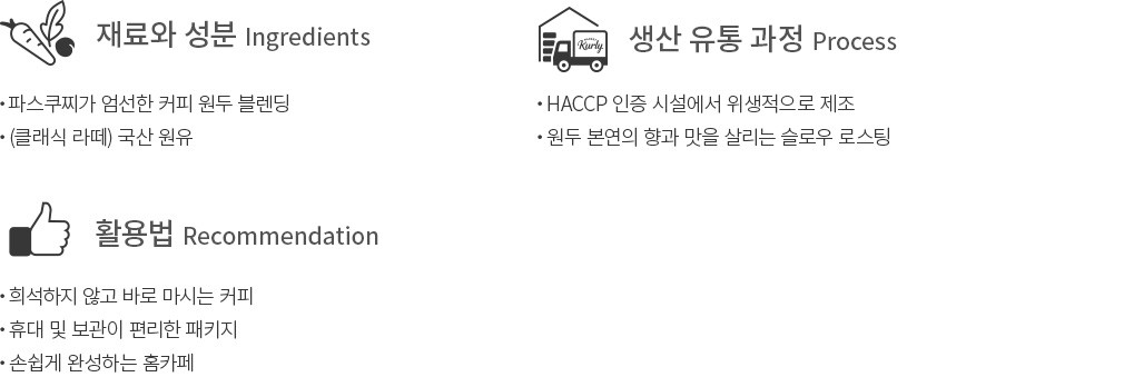 ・특징 : 파스쿠찌의 노하우가 담긴 원두 선별과 로스팅 방식으로 완성한 아메리카노예요. 부드러운 산미와 적당한 바디감으로 부담 없이 마시기 좋아요.