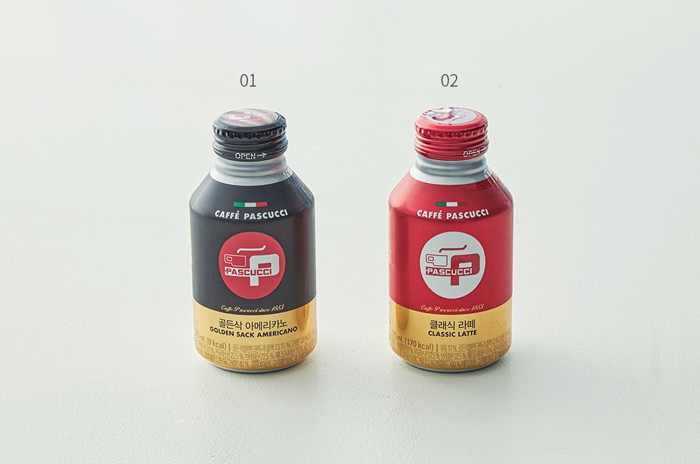 이탈리아 정통 커피 전문점, 파스쿠찌. 이제 RTD 커피로 간편하게 누려 보세요. 시그니처 원두인 '골든삭'을 사용해 매장에서 즐기는 아메리카노의 맛을 그대로 담았어요. 원두 본연의 풍미를 오롯이 끌어낼 수 있도록 천천히 로스팅했기에 고소하고 산뜻한 산미가 느껴진답니다. 여기에 국산 원유를 더해 부드럽고 달달한 클래식 라떼까지 준비했으니 취향에 따라 선택해 보세요. 가방에 쏙 넣어 휴대하기도 좋고, 디저트와 곁들이면 금세 홈카페를 완성할 수 있을 거예요.