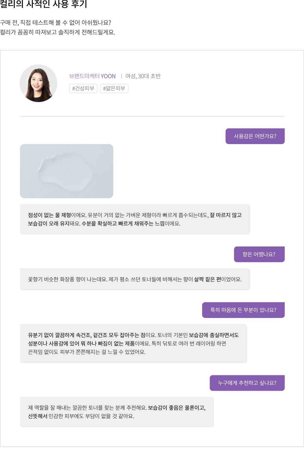 사용법 ・ 화장 솜에 적셔 피부결을 따라 부드럽게 닦아주세요.