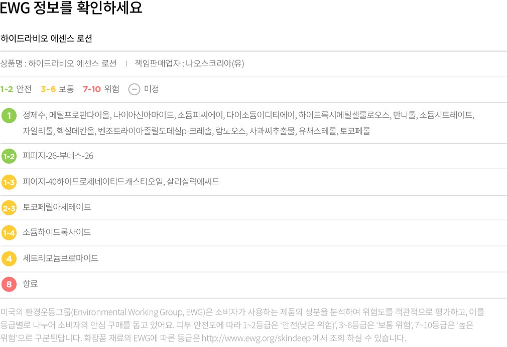 컬리는 EWG로부터 보통, 위험 등급을 받은 성분이라 하더라도 숨기지 않고 정직하게 공개합니다. 더불어 우려되는 성분에 대한 정보를 함께 제공해 드리오니 구입 전 반드시 확인해 주세요.