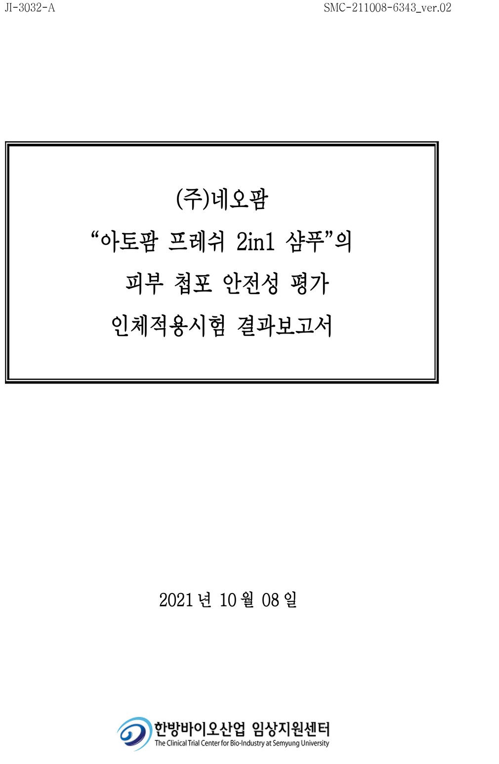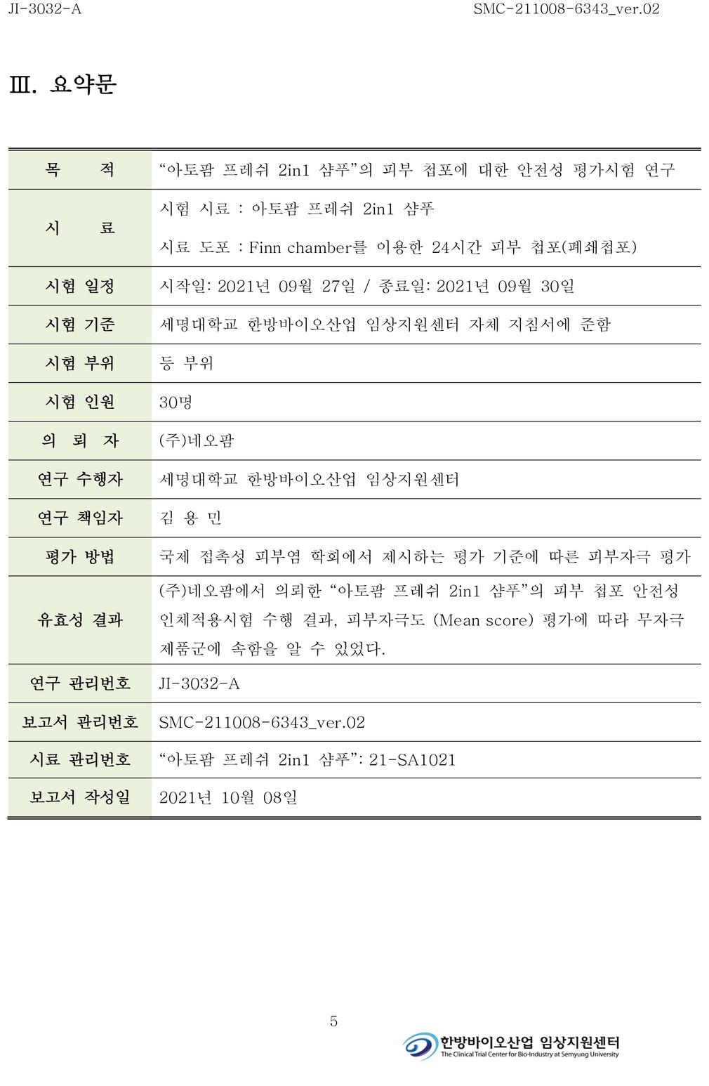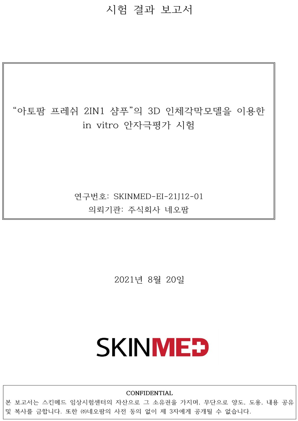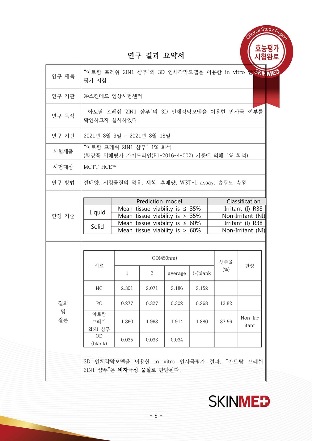 ②스킨메드 임상시험센터 : 안자극평가 시험 결과 비자극성 물질로 판단