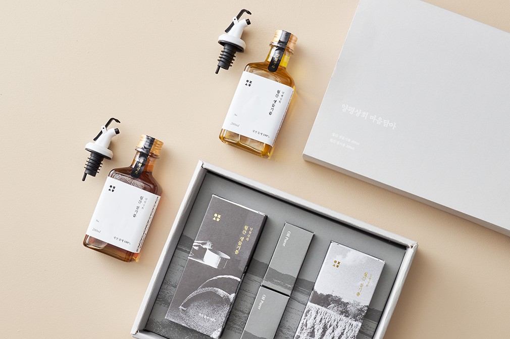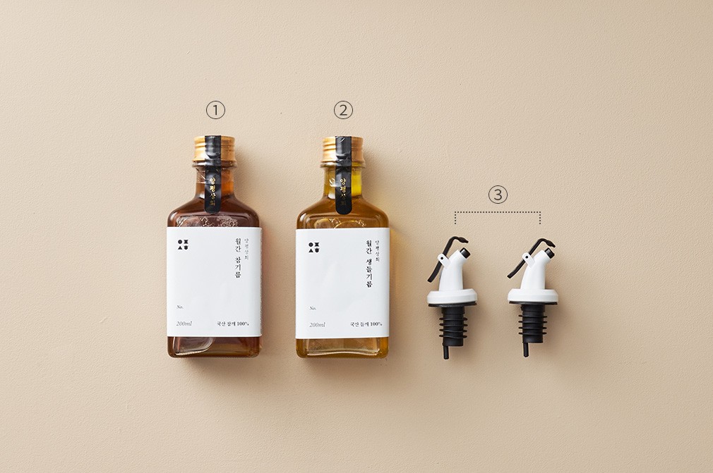 양평상회 마음담아 선물세트 ・구성 : ①참기름, ②생들기름, ③오일 푸어러