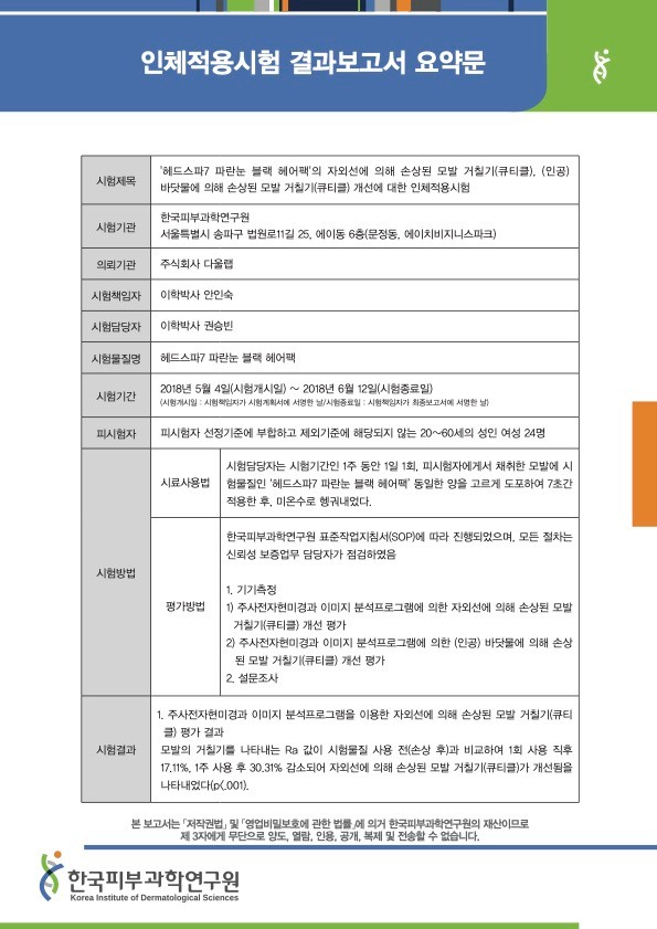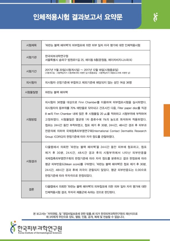 성적서를 확인하세요 ・시험 기관 : 한국피부과학연구원