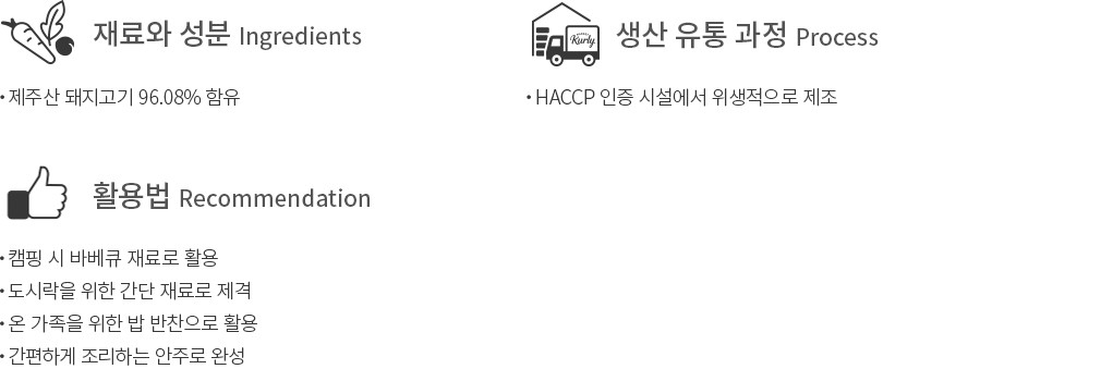 - 소고기, 돼지고기, 대두 함유 - 닭고기, 계란, 우유, 밀, 토마토, 조개류, 아황산류와 같은 시설에서 제조