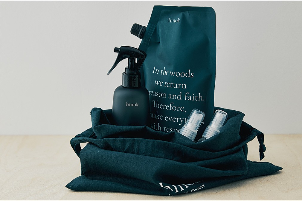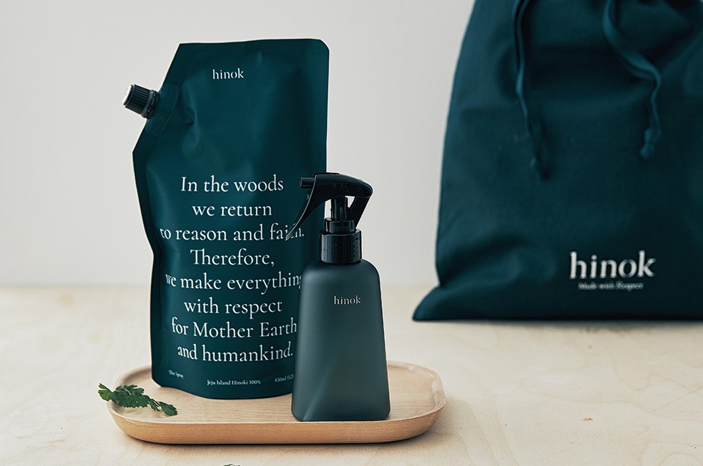 푸른 어스름이 깔린 새벽녘 편백숲의 향을 고스란히 담아낸 더 스프레이 세트. 제주 편백나무 숲에서 가지치기한 후 남은 재료들을 모아 만든 업사이클링 편백 탈취제입니다. 향료가 대체할 수 없는 편백수 본연의 자연스러움이 마음을 편안하게 해요. 재활용 플라스틱으로 만든 공병에 리필팩을 채워서 사용하는 제품으로, 박스 대신 여러 번 사용할 수 있는 파우치 패키지를 선택한 점에서도 사람과 자연을 향한 희녹의 존중이 읽힙니다. 지속 가능한 삶에 대한 철학을 함께 나눌 수 있는 분께 선물해 보세요.