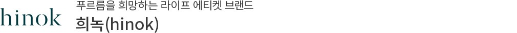 바랄 희(希), 푸를 녹(綠). 푸르름을 희망한다는 뜻을 지닌 희녹은 라이프 스타일을 넘어 '라이프 에티켓'을 이야기하는 브랜드입니다. 나의 청결이 타인을 배려하는 것이며, 나아가 이 땅의 건강한 미래를 위한 길임을 인식하고 실천하지요. 희녹의 첫 번째 여정은 제주에서 시작했어요. 재료, 생산 및 사용 방식, 사용 후 처리에 이르기까지 희녹의 선택은 건강하고 지속가능한 삶이 무엇인지 한 번 더 생각해보게 합니다. 삶의 작은 부분에도 사람과 지구를 향한 존중의 마음이 깃들길 바란다면, 희녹의 여정에 함께 해보세요.