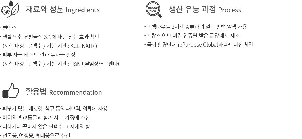 ・ 특징 : 여행용 사이즈의 희녹 공병(250mL), 휴대용 미니 공병(30mL), 편백수가 들어있는 리필팩으로 구성되어 있어요. 이 모든 것을 담아 선물할 수 있도록 희녹 파우치도 함께 보내드려요.