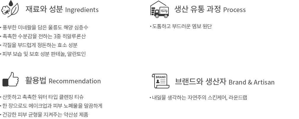 사용법 ・ 클렌징 티슈 1매를 꺼내 얼굴 전체를 부드럽게 닦아내세요. 필요에 따라 가볍게 물세안하거나 2차 세안하여 마무리하세요.