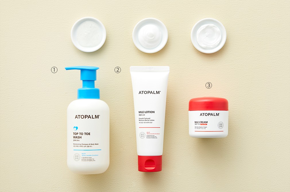 아토팜은 민감한 피부를 의미하는 ATO와 손바닥으로 부드럽게 케어해준다는 의미를 담은 PALM을 조합한 이름이에요. 박병덕 박사가 민감한 피부로 고생하는 셋째 아이를 위해 개발한 MLE®의 우수한 보습 기능으로 이미 많은 사람들에게 잘 알려진 브랜드죠. 아토팜은 보습 제품 이외에도 피부를 자극이 적은 샴푸, 워시, 선크림 등 다양한 제품 라인을 갖추고 있으며, 오랜 기간 한국산업의 브랜드파워(K-BPI) 1위에 선정될 만큼 꾸준한 인기를 구가하고 있습니다.