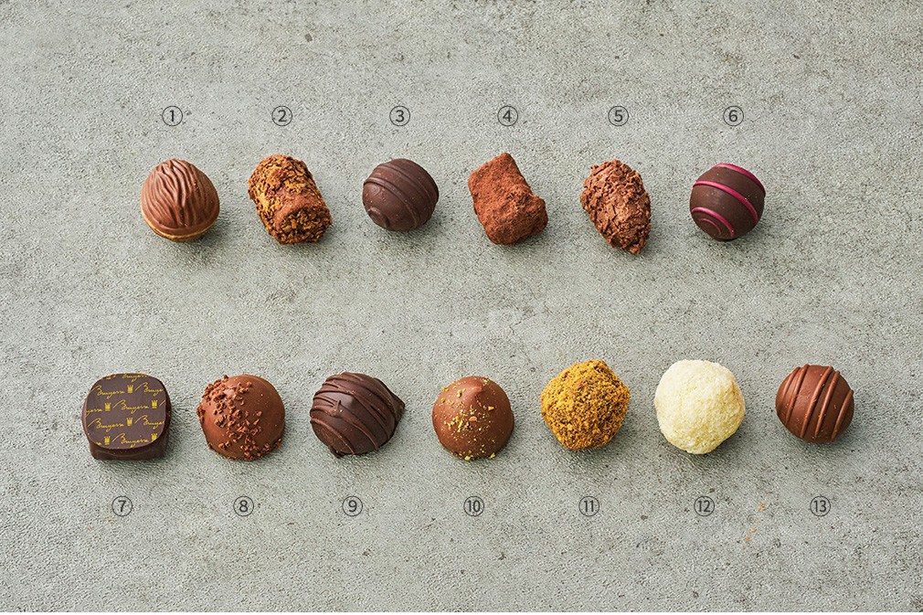 ・구성 : 누왁 2개입, 트러플 캐러멜 1개입, 펠르 다크 프랄린 2개입, 트러플 베유레 1개입, 트러플 누가틴 2개입, 펠르 마카롱 프람보이스 1개입, 다크잔두자 1개입, 마논 쿠키 1개입, 아즈테카 1개입, 마논 피스타치오 1개입, 펠르 스페큘러스 1개입, 펠르 코코 1개입, 펠르 밀크 프랄린 1개입
