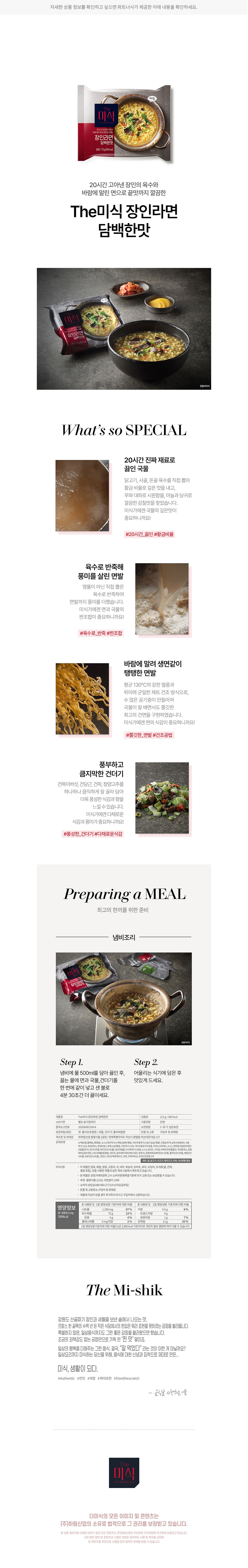 [하림 The 미식] 장인라면 담백한 맛 4입