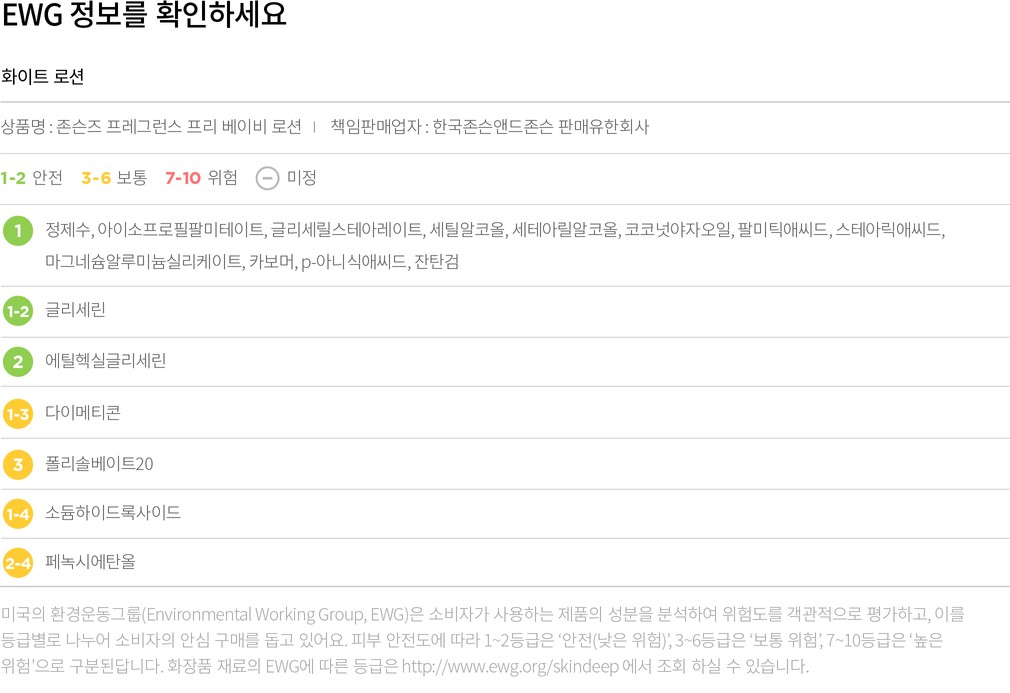 컬리는 EWG로부터 보통, 위험 등급을 받은 성분이라 하더라도 숨기지 않고 정직하게 공개합니다. 더불어 우려되는 성분에 대한 정보를 함께 제공해 드리오니 구입 전 반드시 확인해 주세요.