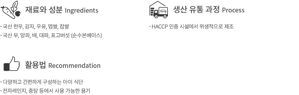 - 쇠고기, 우유, 대두, 밀 함유 - 이 제품은 알류, 우유, 메밀, 땅콩, 대두, 밀, 고등어, 게, 새우, 돼지고기, 닭고기, 쇠고기, 오징어, 조개류(굴, 전복, 홍합 포함), 복숭아, 토마토, 아황산류, 호두, 잣을 사용한 제품과 같은 제조시설에서 제조하고 있습니다.