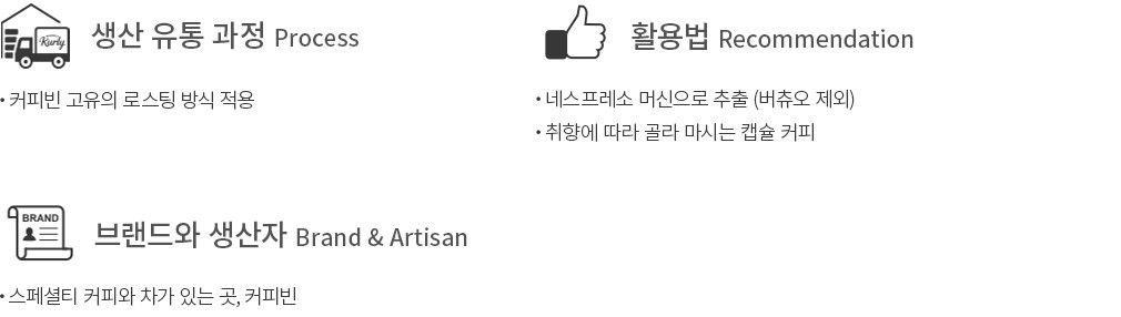 ・특징 : 카카오와 카라멜이 자아내는 진한 풍미, 그리고 탄탄한 균형감이 돋보이는 커피입니다.
