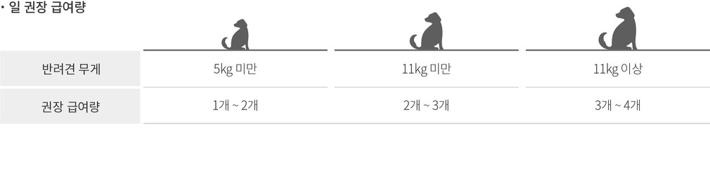 간식 급여 시 주의사항 ・반려견의 연령, 견종, 활동량에 따라 급여량을 조절해주세요.