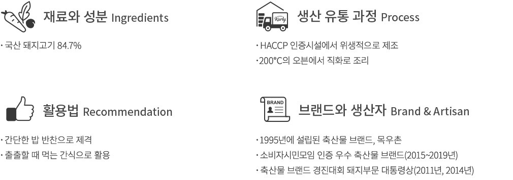 - 돼지고기, 쇠고기, 우유, 대두, 밀, 토마토 함유 - 알류, 계란, 닭고기, 조개류와 같은 시설에서 제조