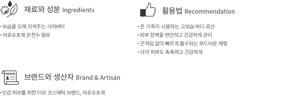 ・ 특징 : 순한 온 가족용 고보습 바디 로션입니다.