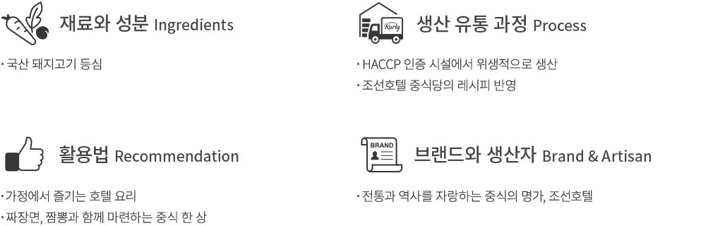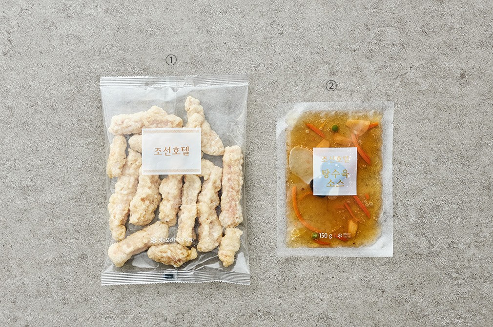 - 탕수육 : 알류(달걀), 돼지고기, 밀, 대두 함유 * 이 제품은 우유, 메밀, 땅콩, 고등어, 게, 새우, 복숭아, 토마토, 호두, 닭고기, 쇠고기, 오징어, 조개류(굴,전복,홍합 포함), 아황산류, 잣을 사용한 제품과 같은 제조시설에서 제조 - 소스 : 대두, 밀 함유 * 이 제품은 알류(가금류만 해당), 우유, 메밀, 땅콩, 고등어, 게, 새우, 돼지고기, 복숭아, 토마토, 아황산류, 호두, 닭고기, 쇠고기, 오징어, 조개류(굴,전복,홍합 포함), 잣을 사용한 제품과 같은 제조시설에서 제조