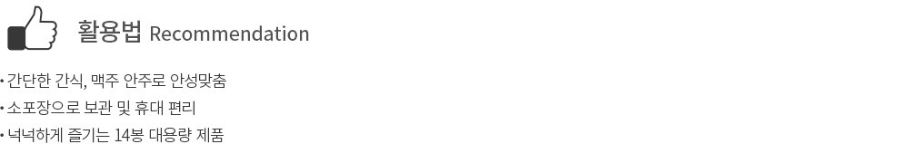 ・ 특징 : 바삭바삭하고 짭조름한 스낵이 다채롭게 들어 있는 제품이에요. 두 가지 종류로 총 14봉이 넉넉히 들어 있습니다.