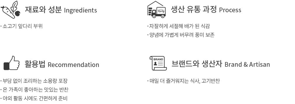- 쇠고기, 대두, 밀, 우유, 토마토, 잣 함유 - 돼지고기, 닭고기, 계란, 땅콩, 새우, 복숭아, 조개류, 고등어, 게, 아황산류와 같은 시설에서 제조