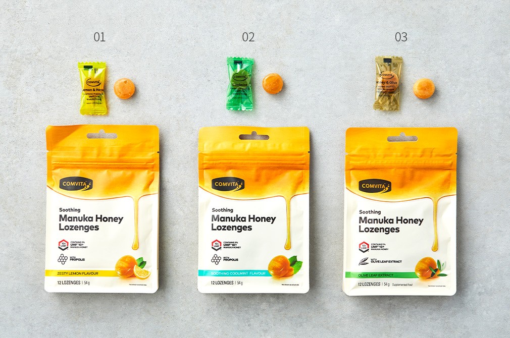 03. UMF10+ 마누카허니 로젠지 올리브잎 추출액 ・중량: 1봉(54g)