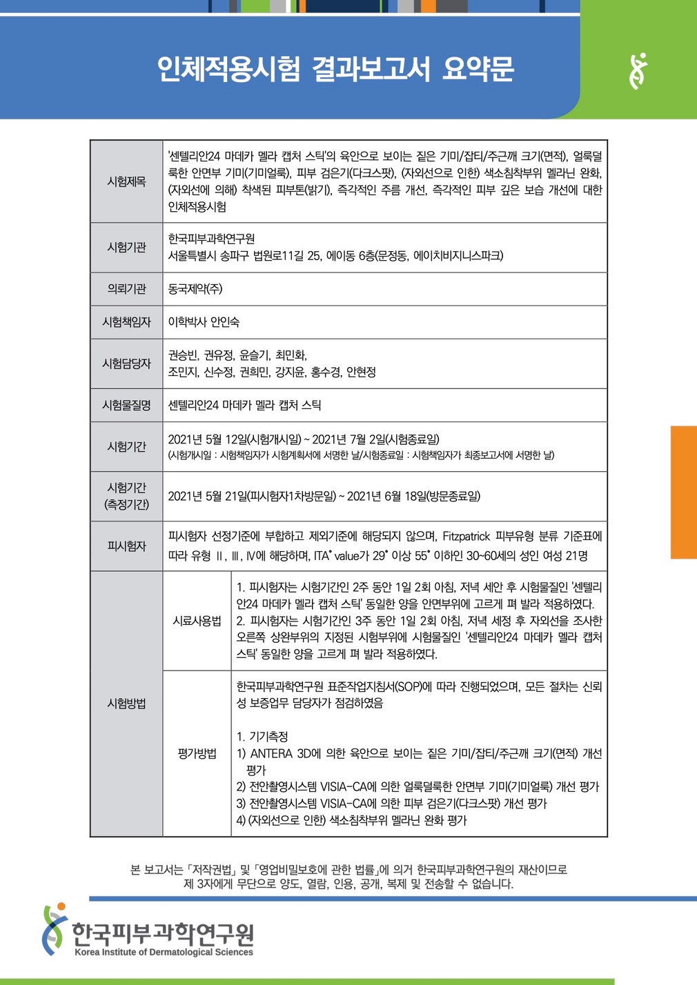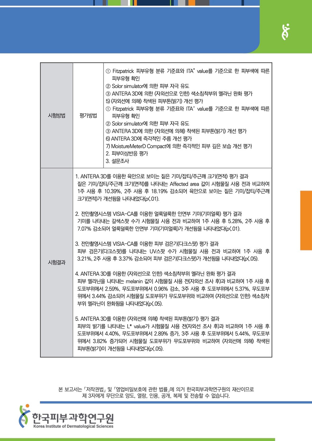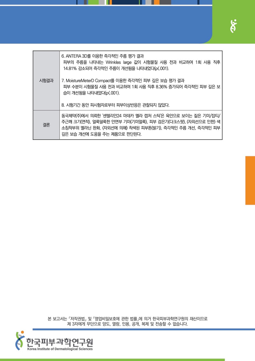 성적서를 확인하세요 ・시험 기관 : 한국피부과학연구원