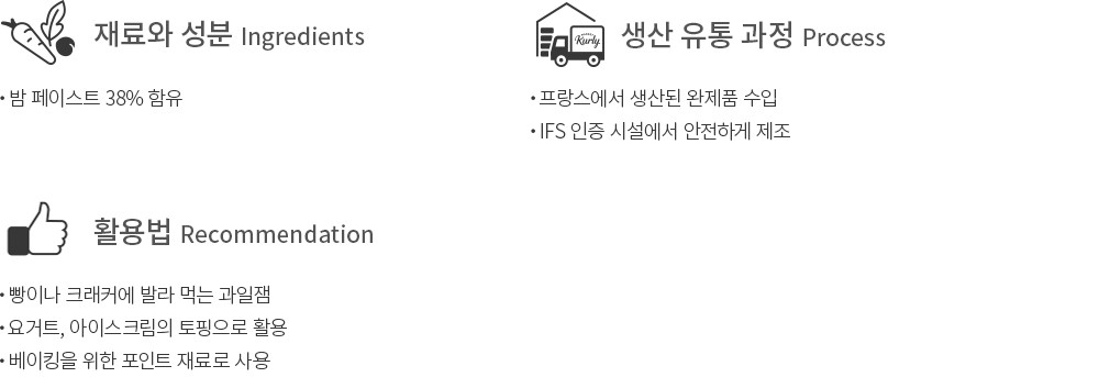 빈티지한 빨간 체크무늬와 다정한 손글씨를 보자마자 반가움을 느낀 분들이 계실 거예요. 본마망은 이름 뜻처럼, 할머니의 마음으로 엄선한 재료로 만든 잼과 디저트를 선보이는 곳이지요. 이번에는 밤의 고소함을 오롯이 담아낸 마론크림을 소개할게요. 밤 페이스트에 설탕, 바닐라 추출물 등을 더해 깔끔하게 완성한 제품이에요. 되직한 질감이라 빵, 크래커 등 다양한 베이커리류에 스프레드하기에도 좋답니다. 따뜻한 우유에 섞어 달콤한 마론 라떼로도 즐겨 보세요.
