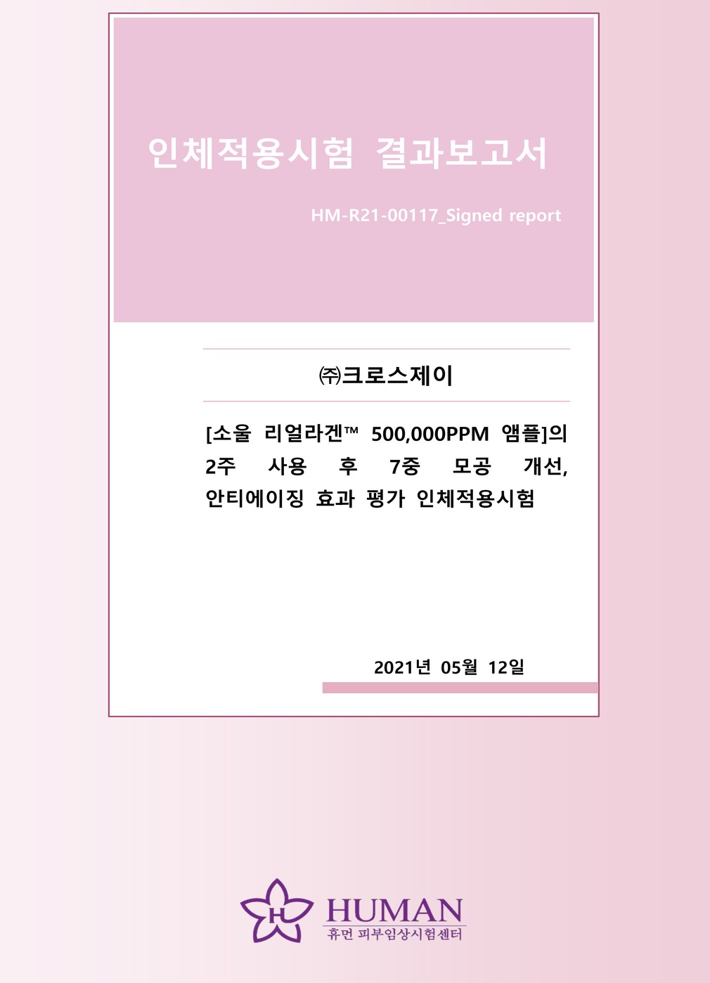 성적서를 확인하세요 ・시험 기관 : 휴먼 피부임상시험센터