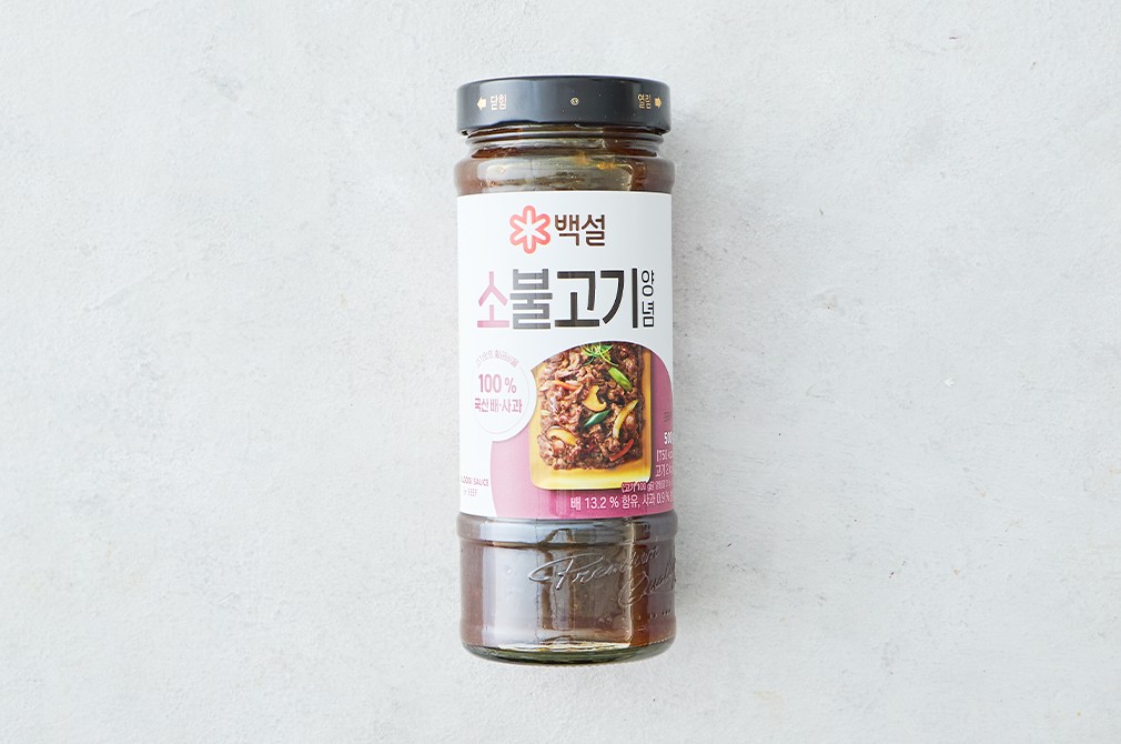 양념 하나만 제대로 구비해 두어도 요리 시간이 확실하게 단축되지요. 백설은 한 병만으로 고기 요리를 완벽하게 만들어 줄 양념을 준비했어요. 국산 배와 사과로 만든 퓨레로 자연스러운 단맛을 더하고, 다진 마늘, 간장 등 각종 양념들을 최적의 비율로 배합했답니다. 얇게 저민 소고기에 골고루 부은 후 재워두기만 하면 순식간에 요리 준비가 끝날 거예요. 고기 2kg에 사용할 수 있는 넉넉한 양이니 온 가족을 위한 소불고기를 준비해 보세요.