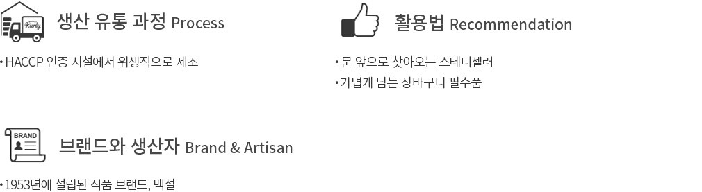 올리고당의 적당한 단맛은 요리의 완성도를 한층 더 높여주지요. 간단 조림부터 볶음 요리까지 활용법도 무궁무진한데요. 매일 사용하는 양념으로, 백설의 요리 올리고당을 선택해 보세요. 달달한 감칠맛은 물론, 먹음직스러운 윤기까지 더해 줄 상품이랍니다. 넉넉한 용량으로, 일부러 마트에 가지 않고도 집에서 편하게 받아볼 수 있어요. 꼭 필요한 순간, 장바구니에 쏙 담아보세요.