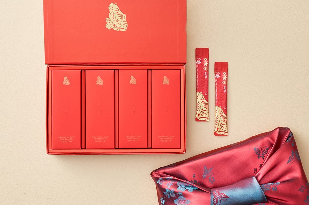 호랑이건강원은 20년 이상 역사를 자랑하는 새롬제약 한방과학연구소의 연구·개발과 전용 재배지에서 정성껏 재배한 원료를 바탕으로 다양한 제품을 선보이고 있는 브랜드예요. 지금 소개하는 호랑이 홍삼은 국산 6년근 홍삼을 진하게 농축한 홍삼농축액을 담아낸 제품이에요. 국산 꿀을 비롯해 올리고당, 배 농축액 등의 부원료를 더해 영양은 물론 은은한 달콤함까지 더했지요. 깔끔한 패키지에 담아 보자기에 정성껏 포장해 보내 드리니, 소중한 분들께 전하는 선물로 선택해 보세요.