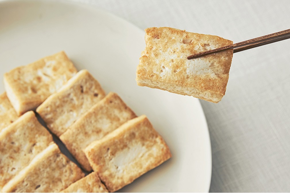 잘 부서지지 않기 때문에 국물 요리에 넣기에도, 사각 모양을 살려 요리하고 싶은 두부부침, 마파두부에 사용하기에도 좋아요. 팬에 구울 때 풍기는 고소한 냄새부터 1등급 국산콩 100%로 만든 두부답죠. 먹을 때도 신선한 국산콩으로 만든 두부의 특징인 고소한 맛이 잘 느껴집니다.