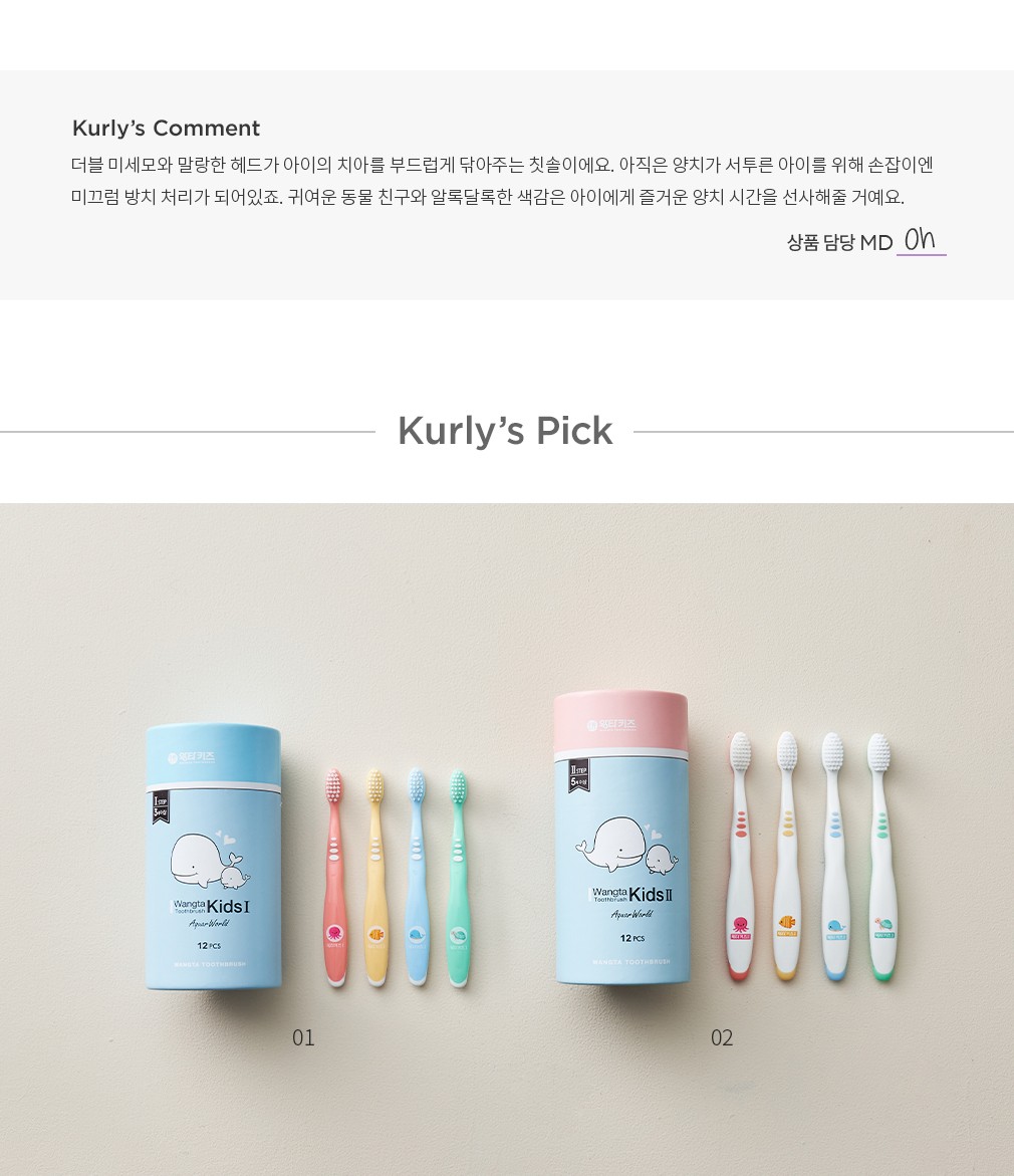 01. 아쿠아월드 어린이 칫솔 1호 ・ 개수 : 1세트(12개입)