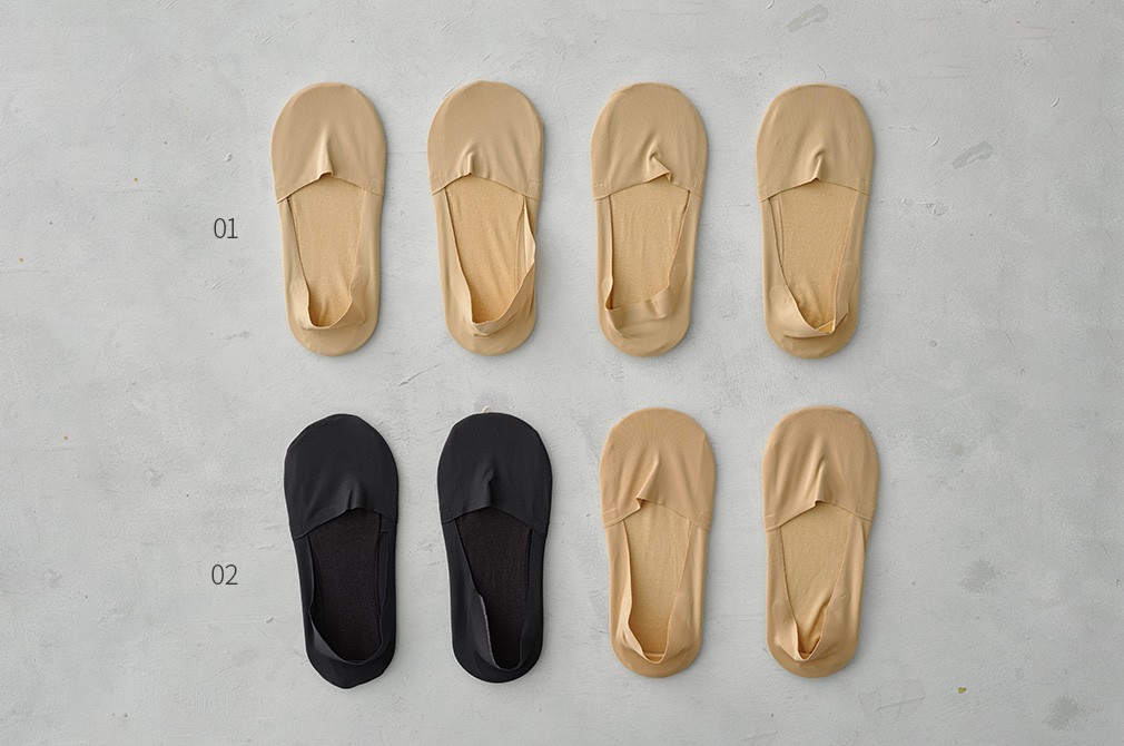 01~02. 여성용 미들컷 퍼펙트 페이크양말 ・ 선택가이드 : 색상에 따라 ①베이지(4족), ②혼합(블랙 2족, 베이지 2족) 중 선택하세요.