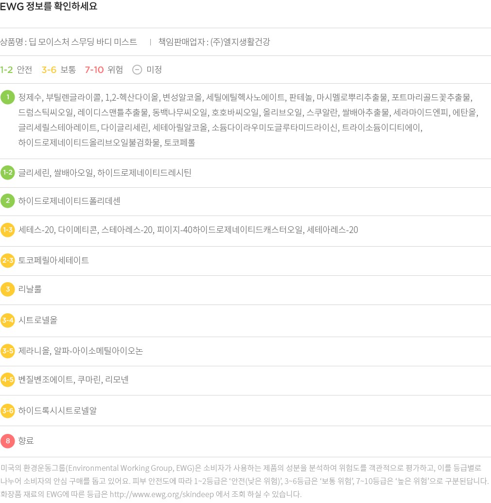 딥 모이스처 스무딩 바디 미스트 ・ 용량 : 1개(120mL)