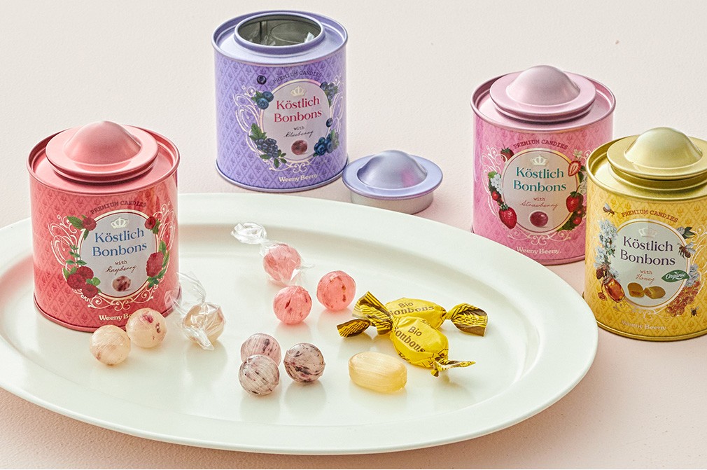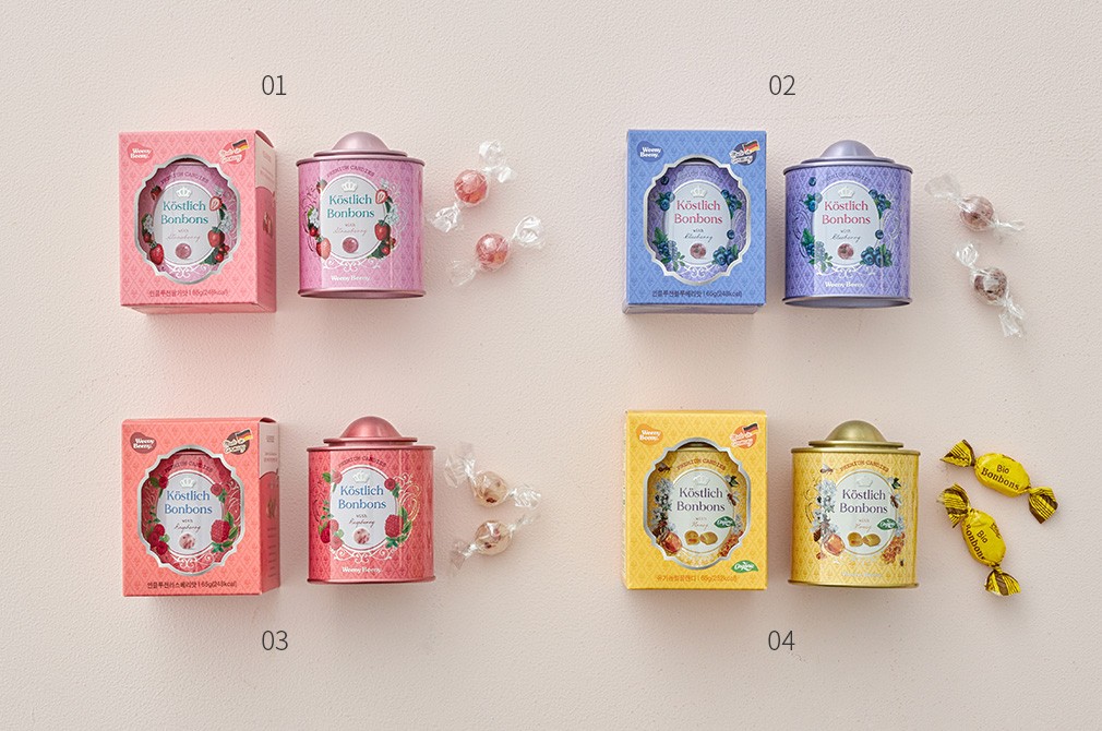 퀘스틀리히 봉봉은 독일어로 아주 맛있는 사탕이라는 뜻이에요. 위니비니가 다채롭게 준비한 퀘스틀리히 봉봉 4종을 소개할게요. 천연 향료와 과일 조각을 함유해 과일의 상큼함을 느낄 수 있어요. 유기농 벌꿀의 향긋한 달콤함을 맛볼 수도 있지요. 우아한 틴케이스에 담아 보내드리니 선물하기에도 안성맞춤이랍니다. 마음을 전하고 싶은 순간, 위니비니 퀘스틀리히 봉봉을 활용해 보세요.