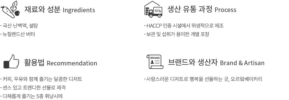 - 계란 함유 - 이 제품은 알레르기 발생가능성이 있는 우유, 땅콩, 대두를 사용한 제품과 같은 시설에서 제조하고 있습니다.