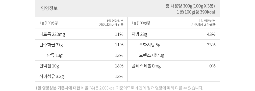 - 밀, 대두 함유 - 땅콩, 호두, 계란, 우유를 사용한 제품과 같은 제조시설에서 제조.