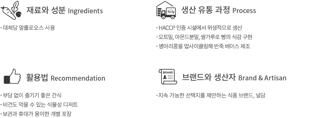 - 다크초콜릿 : 밀, 대두 함유 - 단호박호두 : 밀, 대두, 호두 함유 - 복숭아, 땅콩, 호두, 계란, 우유를 사용한 제품과 같은 제조시설에서 제조.