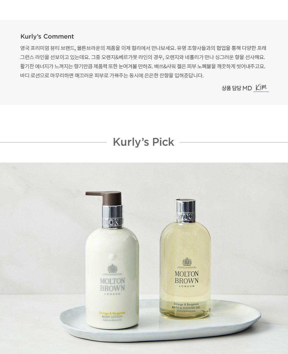 추천 루틴 ・몰튼 브라운의 오렌지 & 베르가못 배쓰 & 샤워젤과 바디 로션을 함께 사용해 보세요. 피부에 스민 잔향을 오래 즐길 수 있어요.