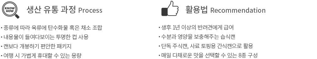 ・ 건식간식에 비해 수분량이 많아 반려견에게 일시적인 상태변화가 생길 수 있습니다.