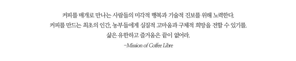 ・ 특징 : 산미나 과일향, 단맛이 지나치지 않아 훌륭한 밸런스가 돋보이는 커피예요. 커피리브레 단골들의 베스트셀러이기도 합니다.