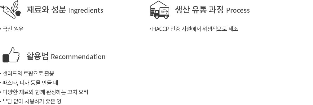 - 우유 함유 - 알류, 땅콩, 대두, 밀, 돼지고기, 복숭아, 토마토, 호두, 쇠고기, 아황산류를 사용한 제품과 같은 제조시설에서 제조