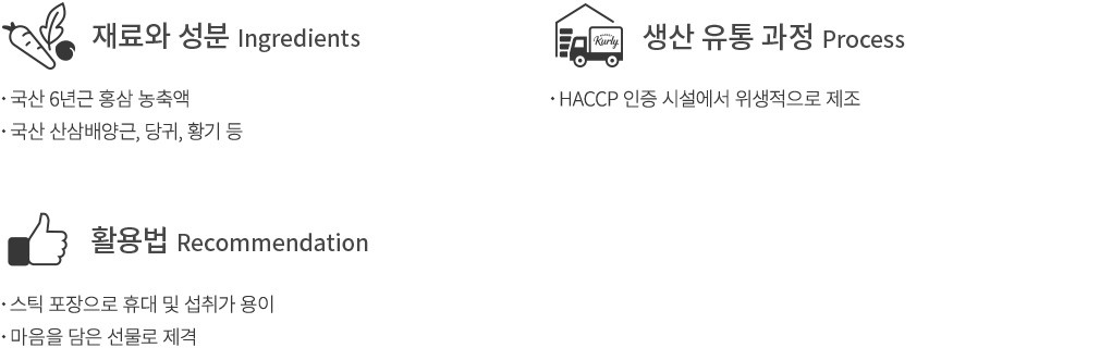 국산 6년근 홍삼 농축액을 알차게 담은 정원삼의 6년근 고려홍삼정 나눔스틱을 만나 보세요. 까다롭게 선별한 국산 산삼배양근, 천궁 등을 함께 담아 더욱 든든하답니다. 프락토 올리고당을 더해 부담 없는 맛으로 완성했고요. 총 200포를 담아 보내드리니 언제든 넉넉하게 즐겨 보세요. 스틱으로 포장되어 있어 보관 및 휴대도 참 간편해요. 감사한 마음을 전하는 선물로도 제격일 거예요.